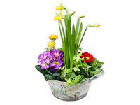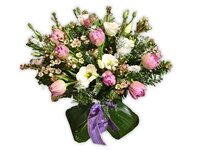 В весенних букетах разрешено применять и оранжерейные цветочки — розы различных расцветок, герберы, орхидеи, гвоздики, каллы и почти все остальные. Однако необходимо обязательно сберечь цветовую палитру весенних цветов: они, зачатую, ласковых, пастельных тонов, потому и оранжерейные цветочки должны быть подобного цвета. Оранжерейных цветов применяют мало, основную часть букета составляют весенние цветы.